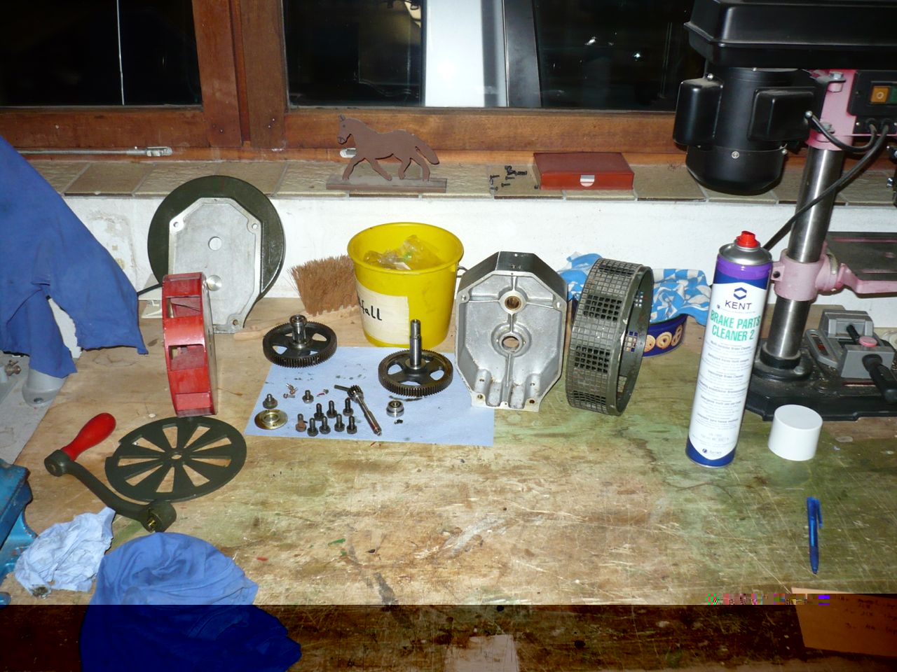 Nachdem ich nun alle Lager neu bekommen habe, habe ich sie nun wieder mit neuem Fett zusammengebaut. Es fehlt noch der Griff. Der muss erstmal wieder gerade gebogen werden, damit die Morsefunktion auch verwendet werden kann... Das Getriebe muss nun erstmal "eingefahren" werden, damit sich das Fett gut verteilt. Schrauben sind alle samt neu.