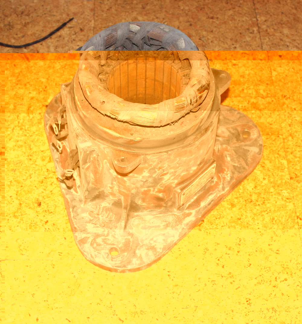Motor und Stator geschliffen mit der Drahtbürste und anschließend Lackiert mit Rostschutzgrund.