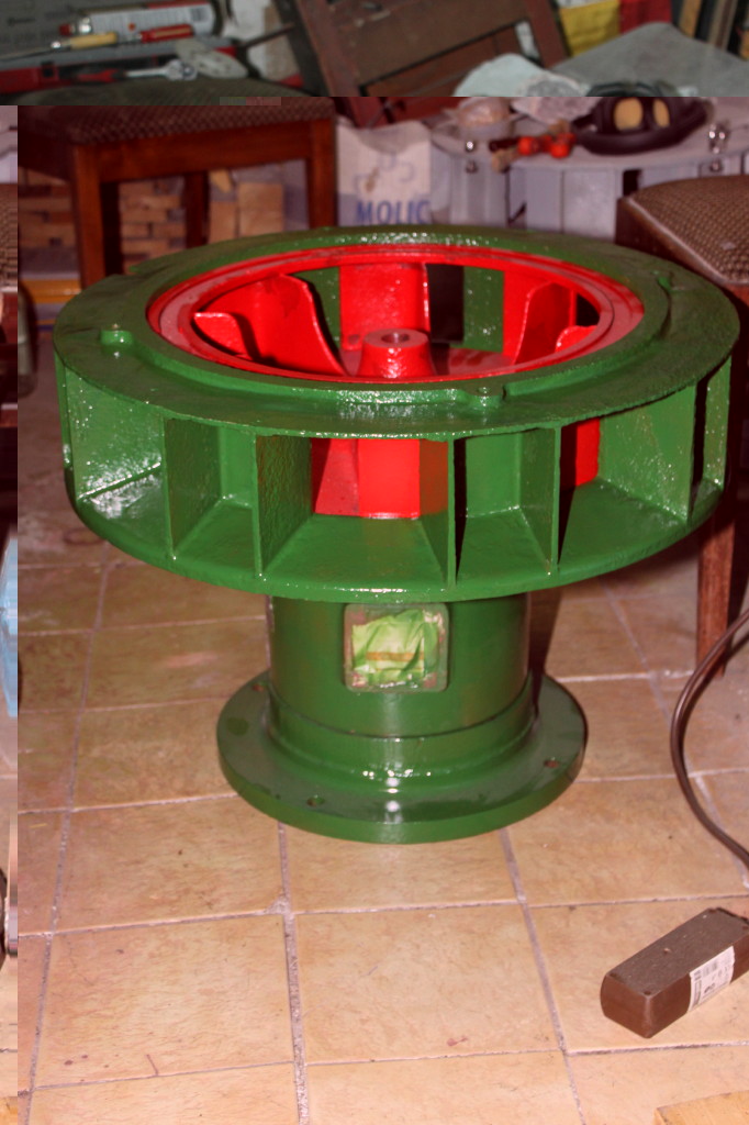 So, wieder einen Schritt weiter, der Stator hat seine Originalform (so wie ich sie mir vorstelle). Heute hat er den letzten Schliff bekommen und die Kabeldurchführung ist ausgesägt und -gefeilt. Den beim Schleifen etwas lädierten Rostschutzanstrich hab ich wieder ergänzt, in rund 24h bekommt mein GfK-Kunstwerk Kunststoffgrund. Dann lasse ich alles bis Mittwoch ruhen und es geht an den Decklack. Nebenbei schaue ich auf dem Schrottplatz nach einem passenden Rohrstück um ihn ähnlich des Rotors im "Broilerverfahren" ;-) lackieren zu können, dann hab ich die komplette Farbschicht in einem Durchgang.