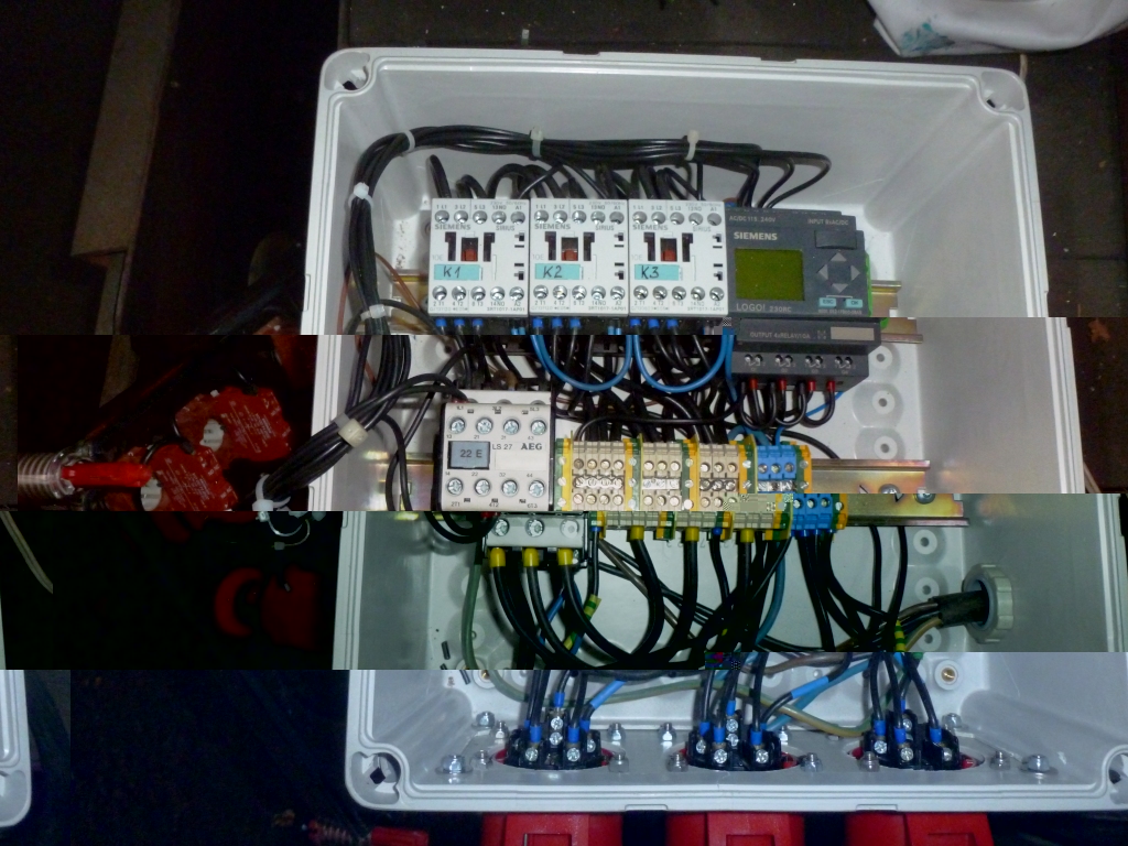 falls es jemanden interessiert...die Steuerung hab ich mit Hilfe einer Siemens LOGO gemacht (sorry, hat ein Fachmann programiert)