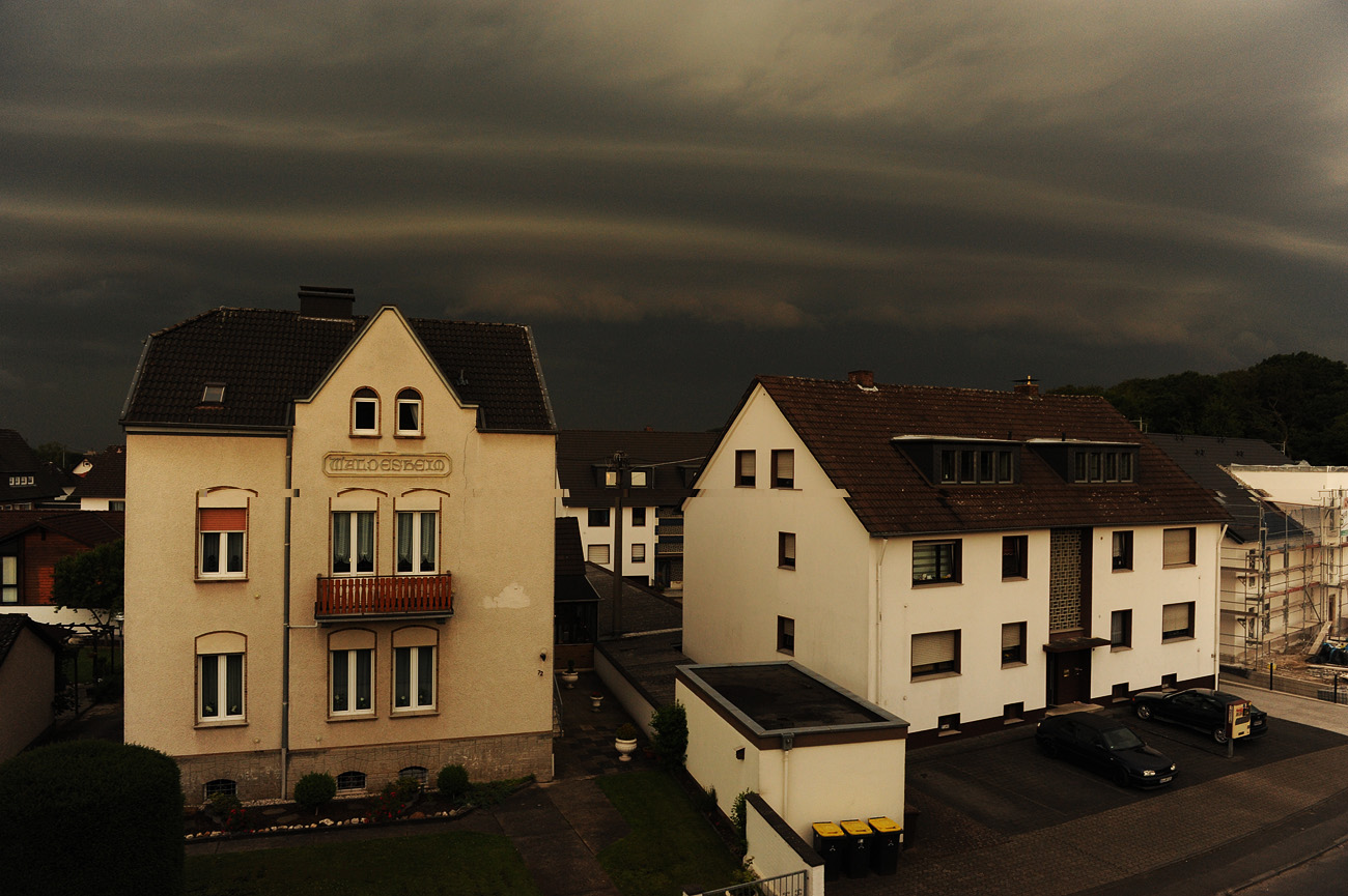 Ich hab das Unwetter schon zwei Stunden vorher über Belgien beobachtet. Und ich konnte schon ahnen was da passiert. Gegen 20.00 Uhr tobte es dann über der Städteregion Aachen. Sirenen haben geheult, allerdings zur Alarmierung der Feuerwehr weil man alles in Alarmbereitschaft gesetzt hat. Und dann gings zur Sache.