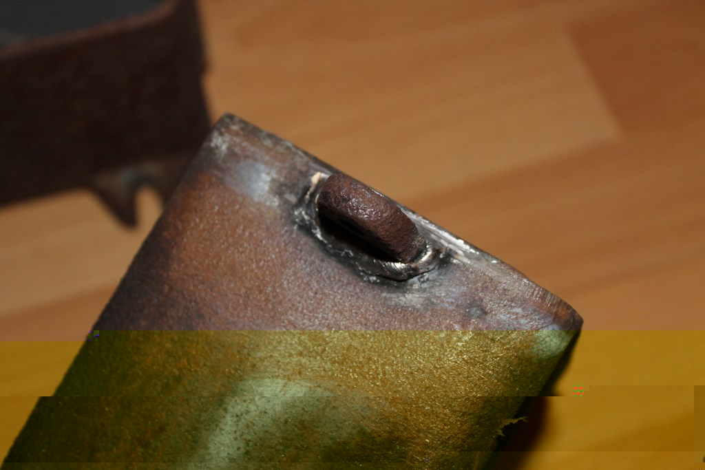 Am Scharnierstück habe ich die Lange naht unten in eins durchgeschweißt, daraus ist der im Bild noch zusehende Riss entstanden.