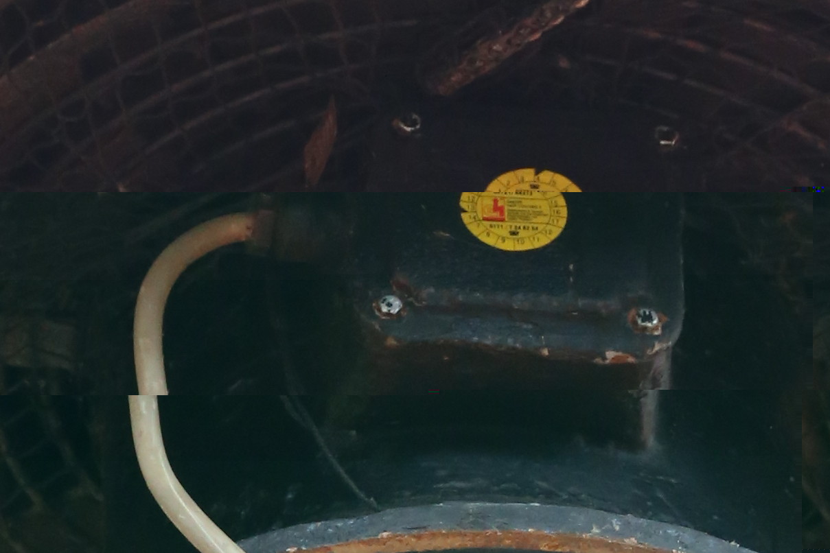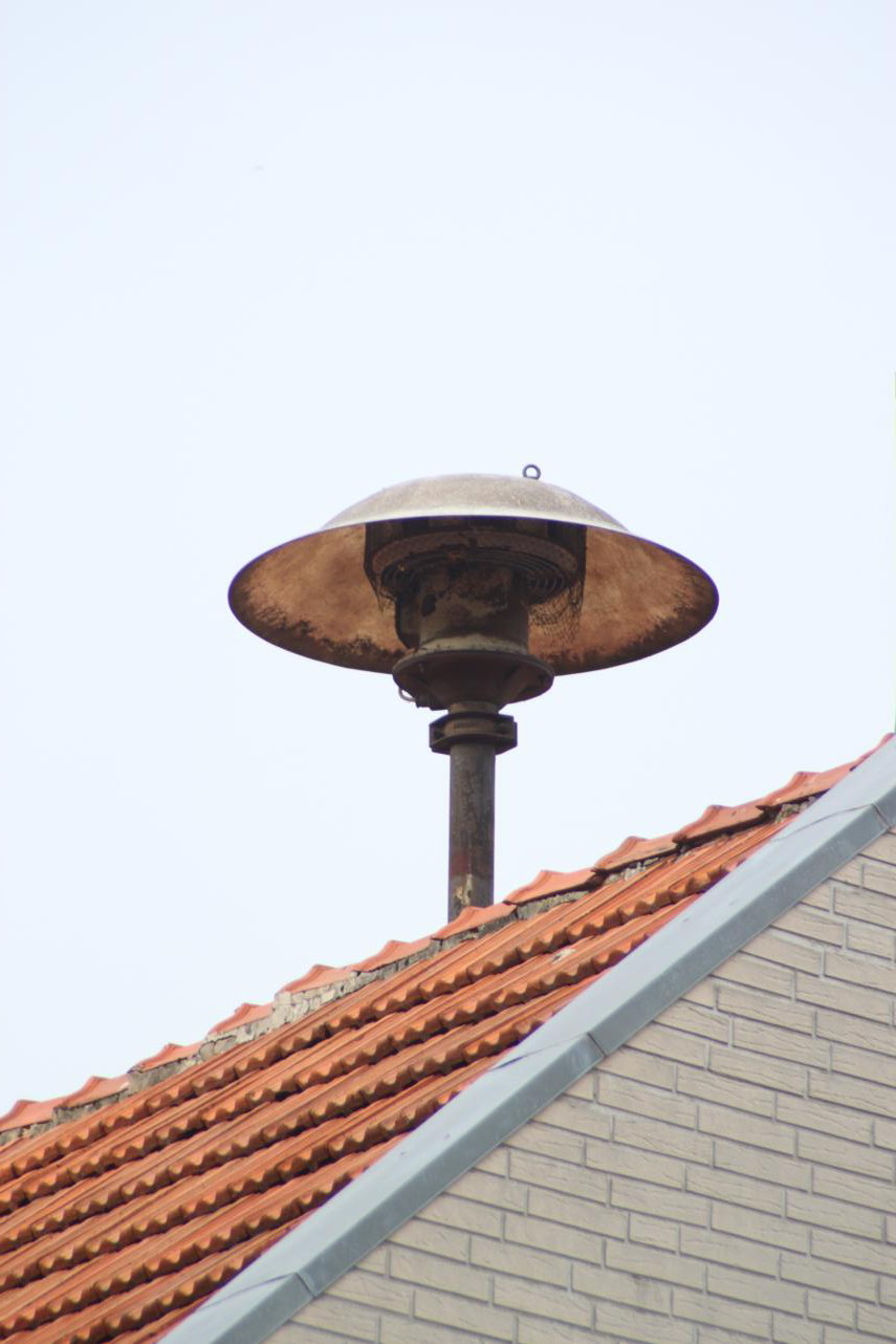 Heute war es dann günstig. Kamera mit Tele geschnappt und rübergedüst. Leider war auch heute kein Kamerad der FW anwesend, also bleibt nur Raum für Spekulationen. Der Anstrich an der (immer noch) DS977 (Fußform) wirkt schon älter, könne also eine durch Hörmann aufgearbeitete sein?! Der Rotor ist heller lackiert, könnte also doch die alte Sirene neu gestrichen sein... Das Dach ist jedenfalls akkurat lackiert, also theoretisch "neu". Der Aufkleber erwies sich als Prüfnachweis, die Firma ist leider nicht zu entziffern. Heißt eigentlich - Kontakt zur FW aufnehmen, hoffen, dass die Fragen beantwortet werden und bei einer der nächsten Proben die sich anbietende Rotoraufnahme machen.