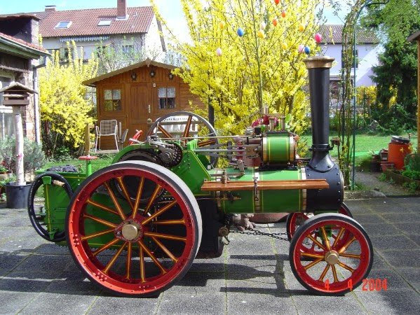 auch mit Dampfmaschinen kenne ich mich hervorragend aus und bin im Besitz eines kohlegefeuerten Dampftraktors im Masstab 1:3,den ich 1996 nach englischen Plänen gebaut habe,er kann 14-20 Personen befördern.