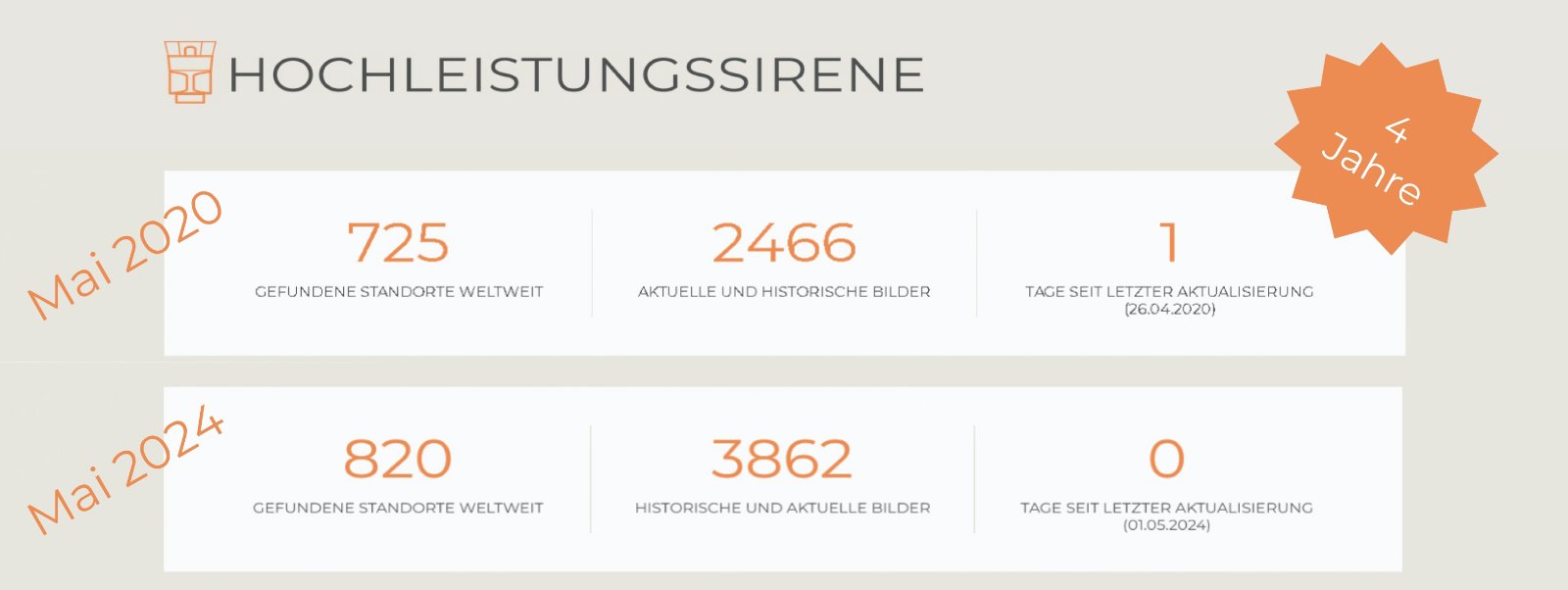 Hier mal ein kleiner Zwischenstand zum heutigen 4jährigen Jubiläum der "neuen" Version von www.hochleistungssirene.de: