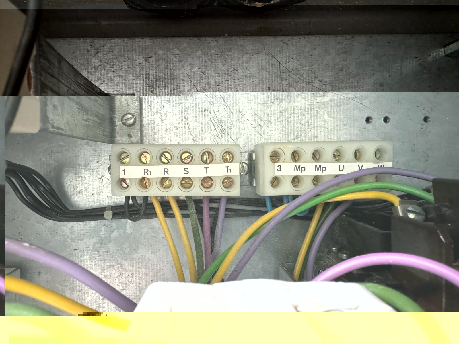 Wenn ich das richtig studiert habe, sind R, S, T die 3 stromführenden Phasen. Der linke Anschlussblock ist für den Eingang 380 V, der rechte ist der Ausgang zur Sirene. U, V, W sind dann also die 3 Phasen die zur Sirene gehen.