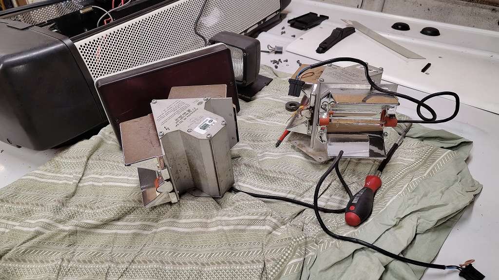 Das Innenleben der Kennleuchten ist ausgebaut, der Lautsprecher abgezwickt und nach dem letzten TÜV Termin kann das erstmal auch so bleiben.