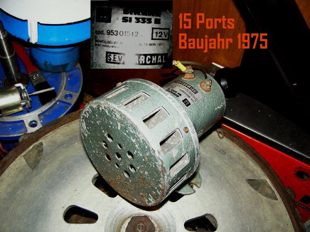 Diese Sirene habe ich am Sonntag aufm Trödelmarkt ergattert. Sie läuft mit 12 V und hat etwa einen Ton von 1000 Hz. Die kleinen Löcher will ich durch eine große Öffnung ersetzen, weil durch die Löcher ein sehr großer Luftwiederstand vorhanden ist. Zum Bild wusste ich nicht, wohin damit?