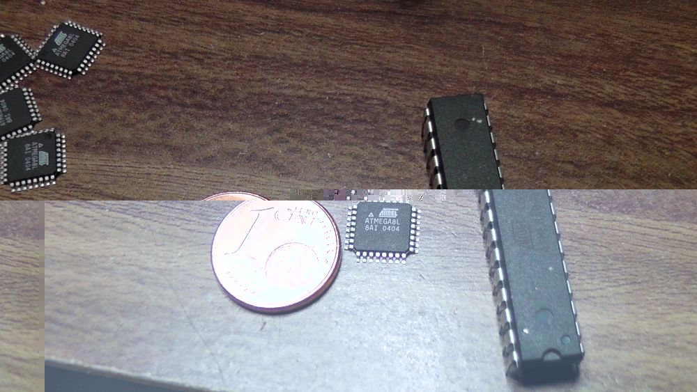 Sodele und da ich ja jetzt meine eigene Eli habe, muss auch ein Steuerkasten dafür her. Leider mach ich damit erst weiter wenn die Eli restauriert ist. Aber ich wollte euch schonmal das Herzstück der baldigen Steuerung zeigen. Es ist ein Atmega 8 im TQFP32 (smd) Format. zum vergleich ist daneben eine 1 Cent Münze und der gleiche Chip nur im DIL 28 Format. Freue mich schon darauf aufs Knöpchen drücken zu können :D