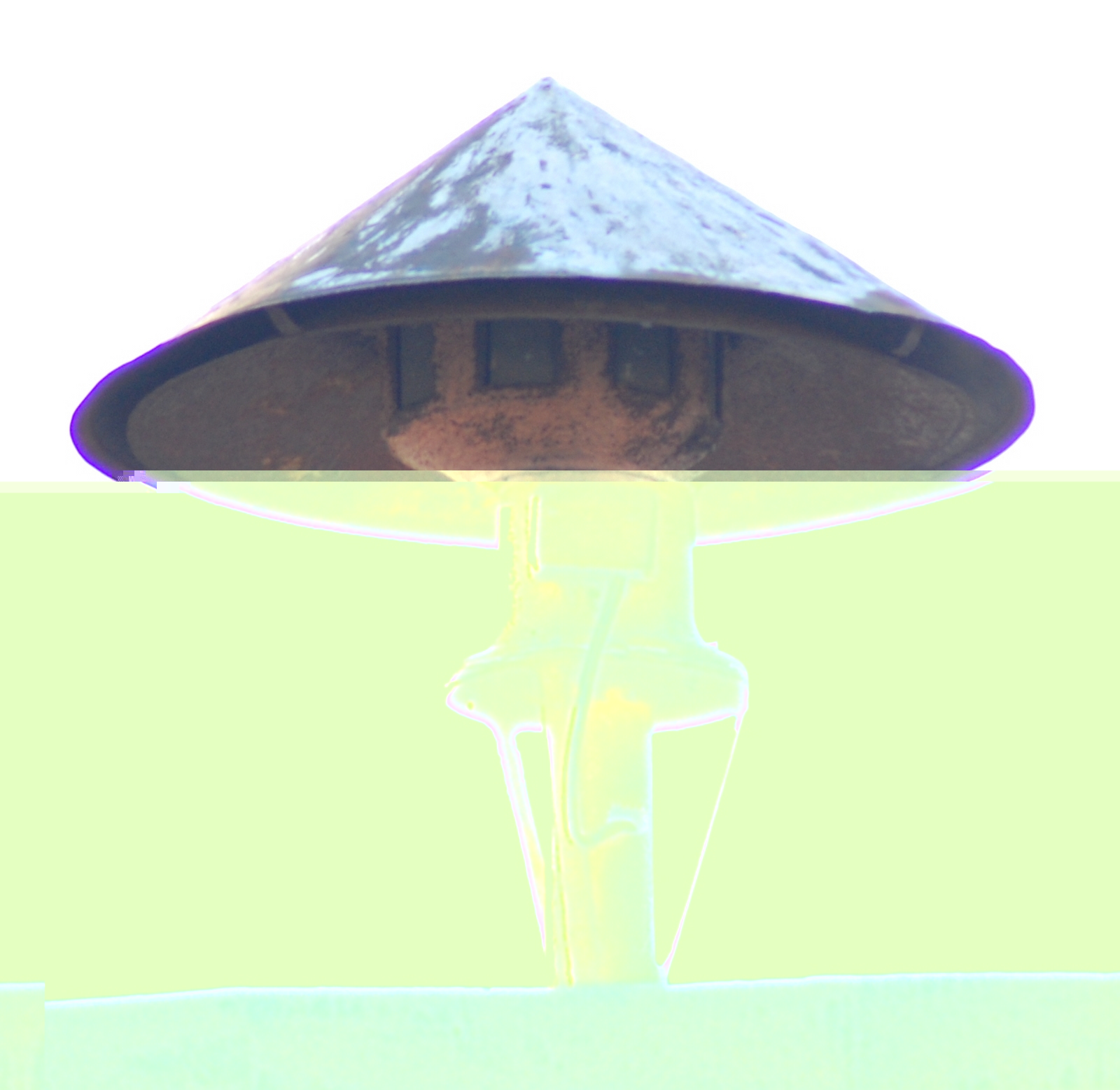 Das untere Dach könnte noch original sein. Das obere wurde dann anscheinend durch das Spitzdach ersetzt weils durchgegammelt war. Der Ansaugspalt erscheint nur etwas schmal.