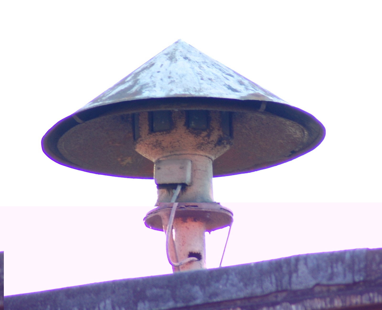 Luftschutzsirene noch eine der damaligen Tiefton-Feueralarmsirenen.