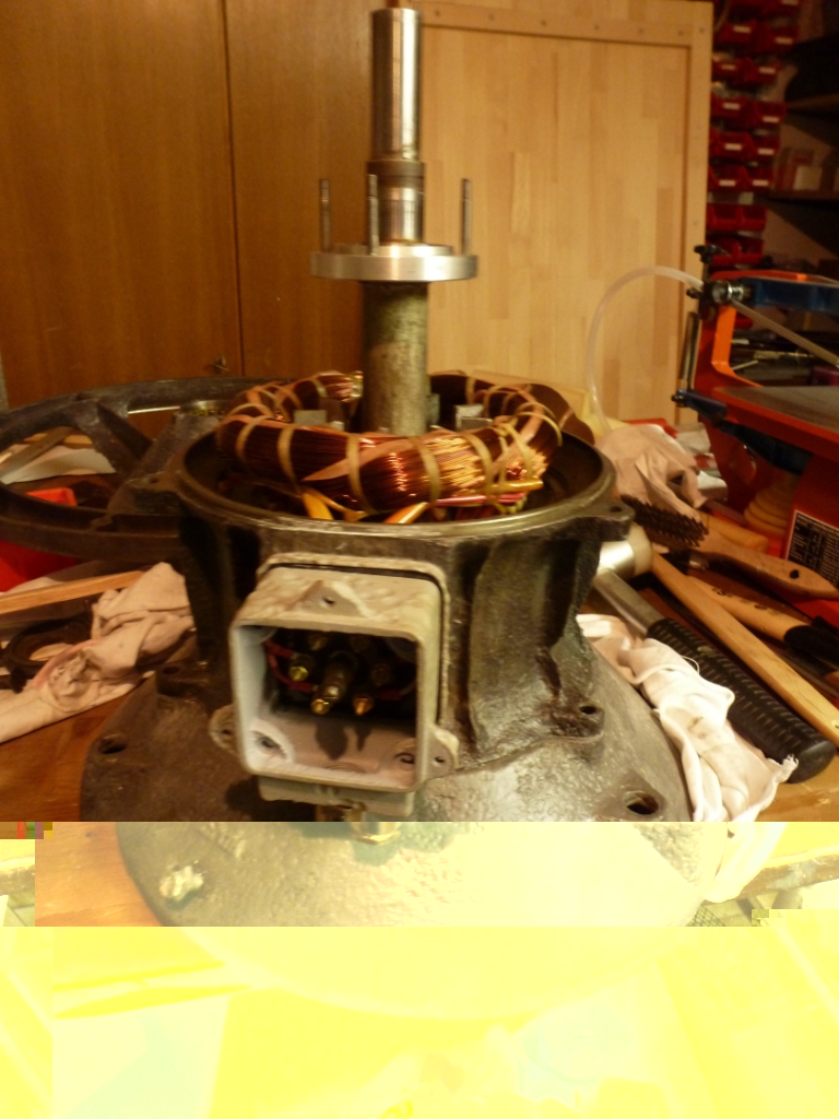 Heute musste sie einfach zusammen! Sie dreht sich von Hand angestoßen fantastisch lange und laut -die alten Lager halt - und "eiert" fürchterlich!!