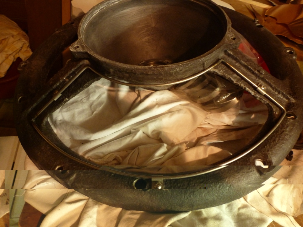 Außerdem wurde das Blech zwischen Ober- und Unterteil nur "kaltverzinkt" da es mal ein verzinktes Blech war und eigentlich in ganz gutem Zustand. Es dient dazu dass die Luft mehr in der Mitte des Lüfters angeaugt wird.
