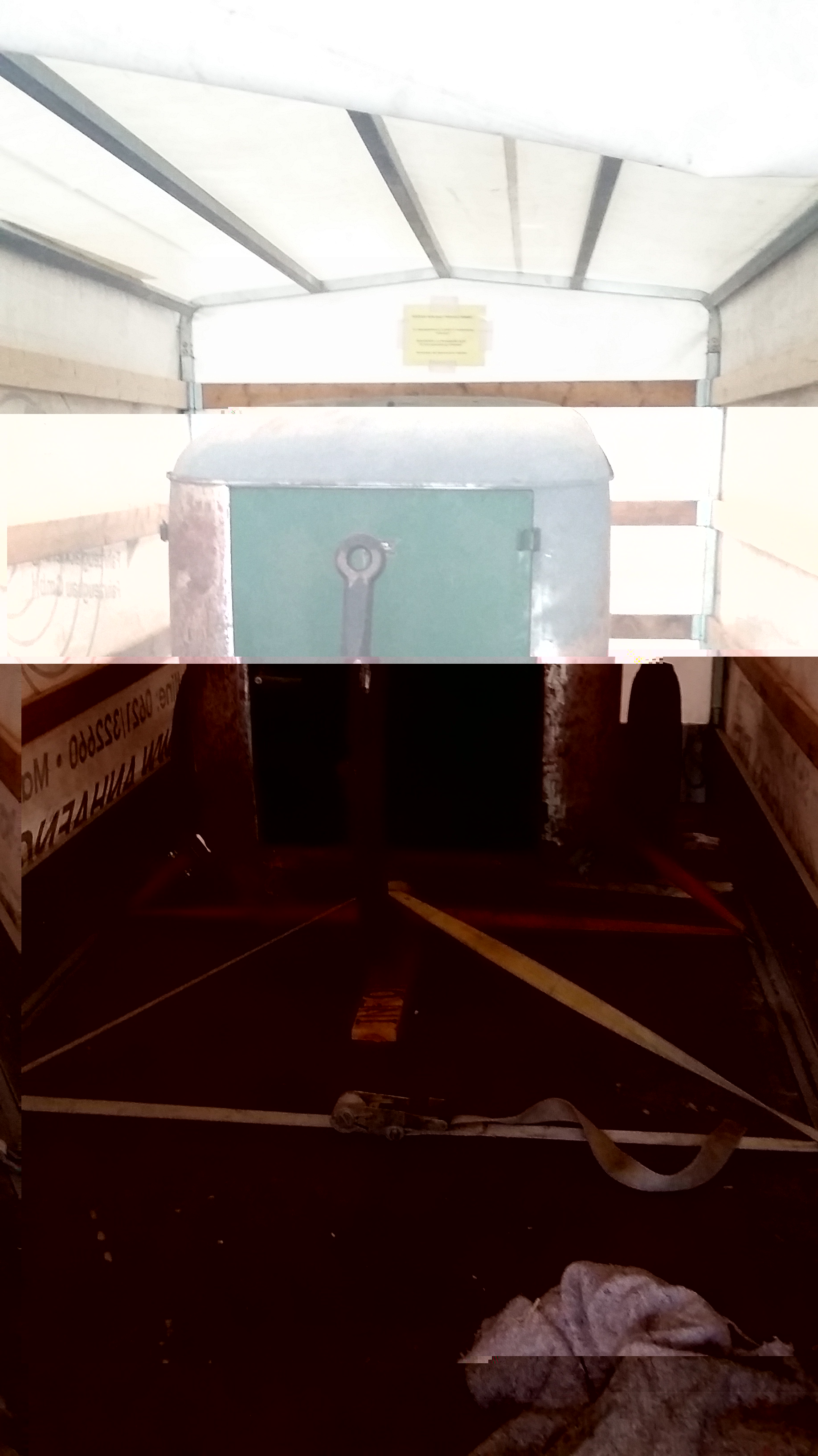 Am Sonntag morgen wurde dann per Gabelstapler abgeladen und eine Bestandsaufnahme der Teile gemacht, nur um festzustellen das kein Teil fehlt. Desweiteren wurde nach fast zwei Jahren der Motor mal wieder zum laufen gebracht. Leider läuft dieser so unrund und liefert keinen Strom mehr, so das dieser im weiteren Gang der Restauration nochmal komplett zerlegt werden muss.