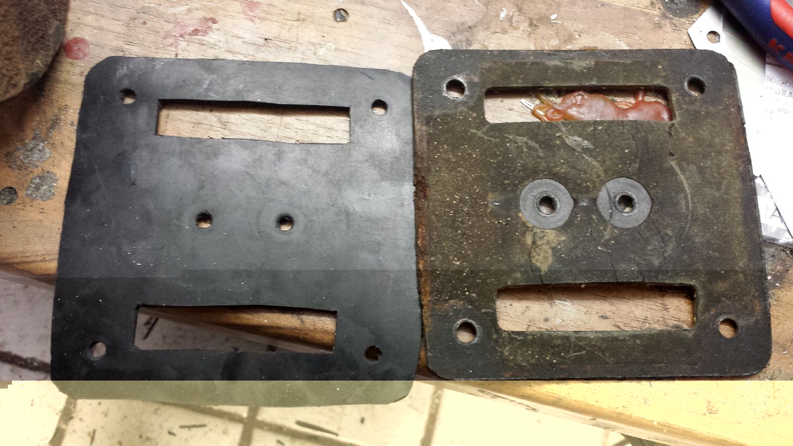 Habe eben noch schnell aus einer Gummimatte eine neue untere Dichtung geschnitten.