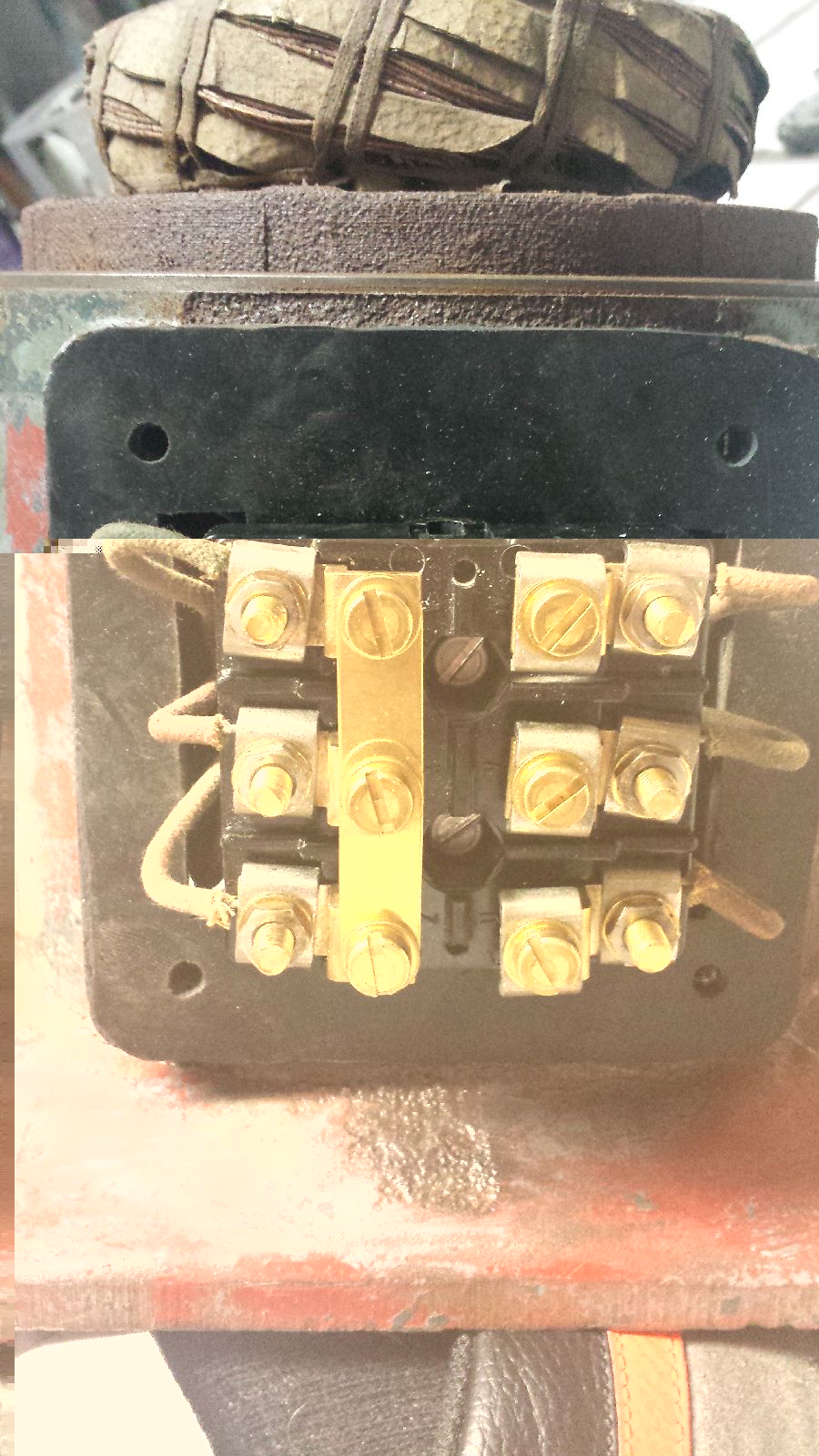 Danach Tape runter, Gummidichtung druff, Anschlussleitungen nach oben gefriemelt, Klemmbrett aufgeschraubt und die Drähte angeschlossen. Dabei ist natürlich auf Richtigkeit der Anschlüsse zu berücksichtigen. U zu X usw.