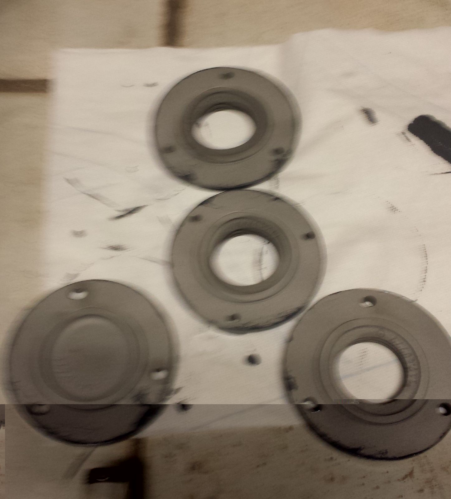 Dann habe ich noch die Lagerdeckel und den Anschlusskasten Strahlen lassen. Dann war Freitag und heute Lackiertag wobei ich heute nur noch den Stator von einer Seite machen musste.
