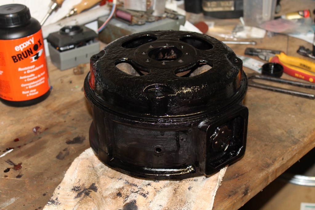 Sieht schon richtig gut aus ohne Rost und Schmadder. Nur mit der Badewannenaktion hätte ich nicht kommen dürfen... Hab mir vorletztes Jahr für solche Aktionen ein großes Mörtelfass zugelegt und darin den Rotor für meine Siemens-E57 mit der Heißwassermethode "entschichtet".