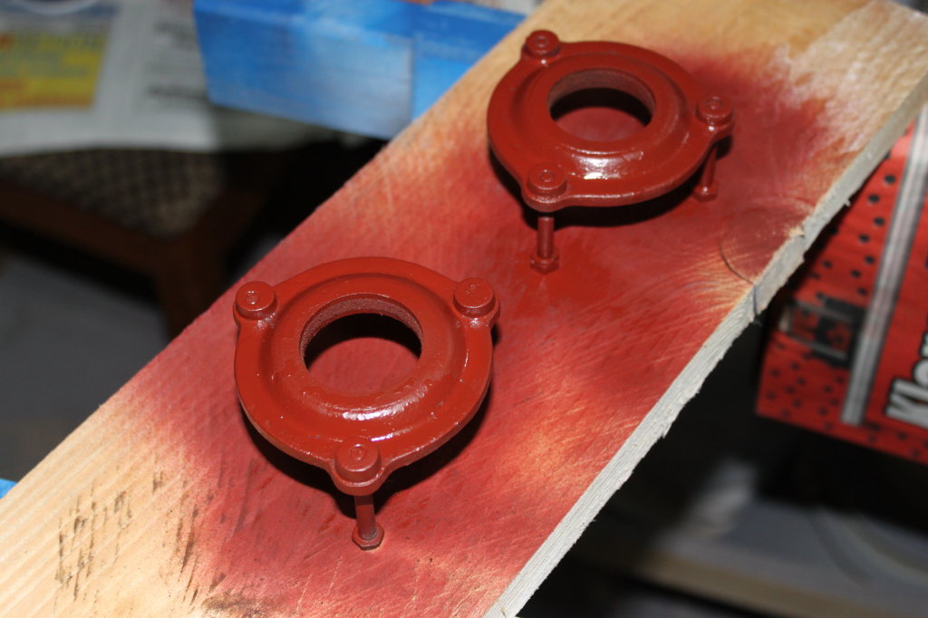 Die letzten Tage hab ich mir mit Spielereien wie Richtungspfeil und Erdungszeichen anmalen vertrieben. Dann hab ich noch nebenbei ein Foto vom E57-Rotor auf meiner DS977 gemacht, nur so interessehalber. Heute gings dann endlich wieder einen richtigen Schritt voran. Die Lager von den Motorwellen (E57 und DS977) sind runter, die Bestellung geht nachher raus. Nebenbei hab ich gleich die Lagerabdeckungen mit den Gewinden entrostet und grundiert. Bis die Lager da sind, sind die auch fertig. Neue Schrauben hole ich auch noch, dann kann ich sie hoffentlich nächste Woche zusammenbauen und testen ;-)