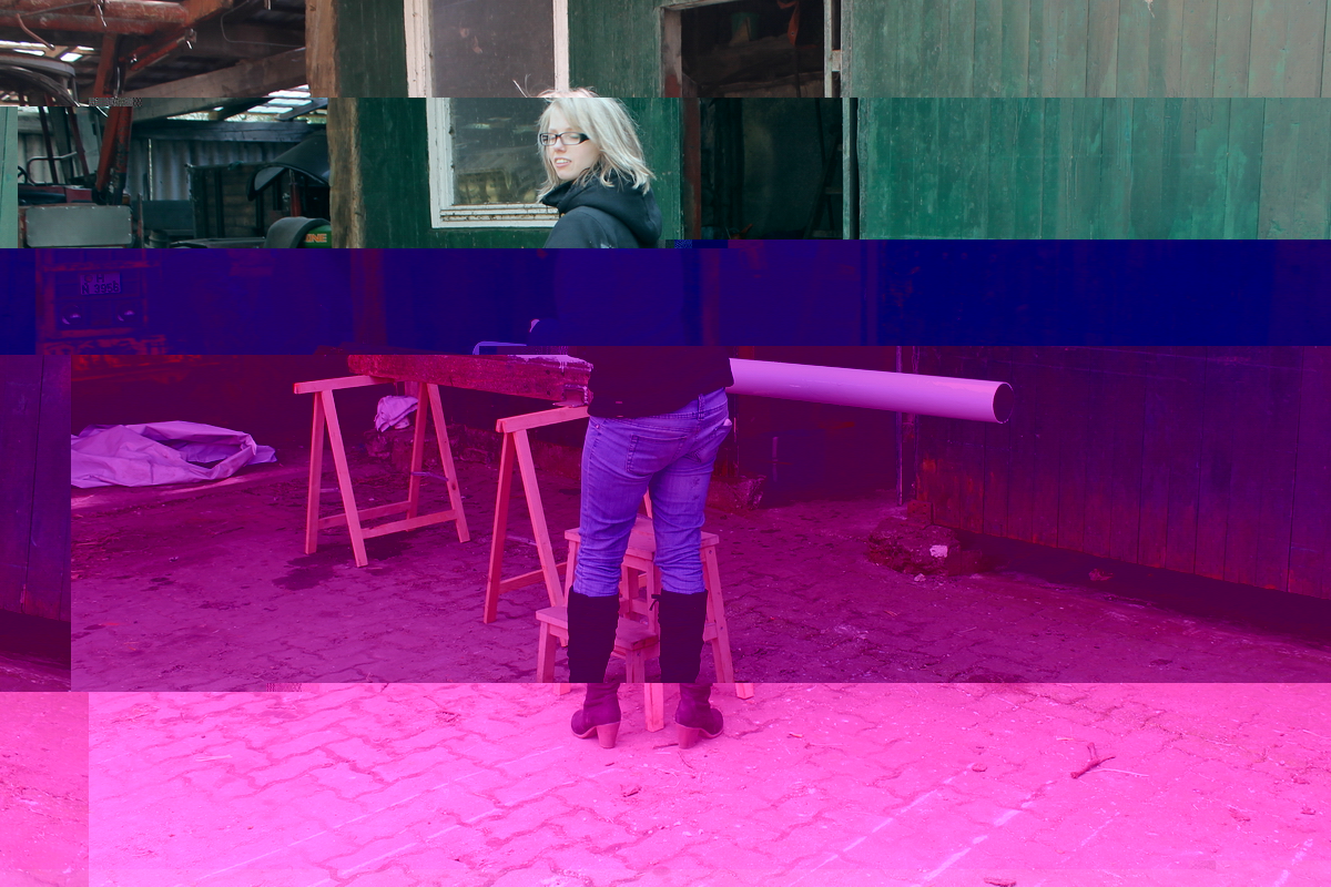 So hier nun mal ein Bild meiner Freundin beim Pinseln, des fertiggestrichenen Mastes und