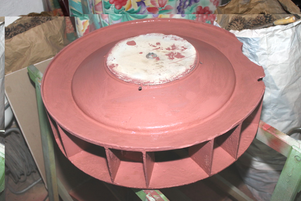 Nachdem mein Kumpel und ich die Sirokko-Heizung in dessen Jeep wieder zum Laufen gebracht haben, gings hier weiter. Zunächst hab ich auf der Oberseite den Spachtel angeschliffen, dann kam eine Lage Vlies und 2K-Harz drauf. Das ließ ich aushärten. Danach hab ich dann den Stator umgedreht und mich der endgültigen Gestaltung der Unterseite gewidmet. Spachteln, härten lassen, schleifen, auf dem letzten Foto ist die 4. Lage zu sehen. Wenn mir das Ergebnis morgen nach dem Schleifen gefällt, ist die Oberseite dran.