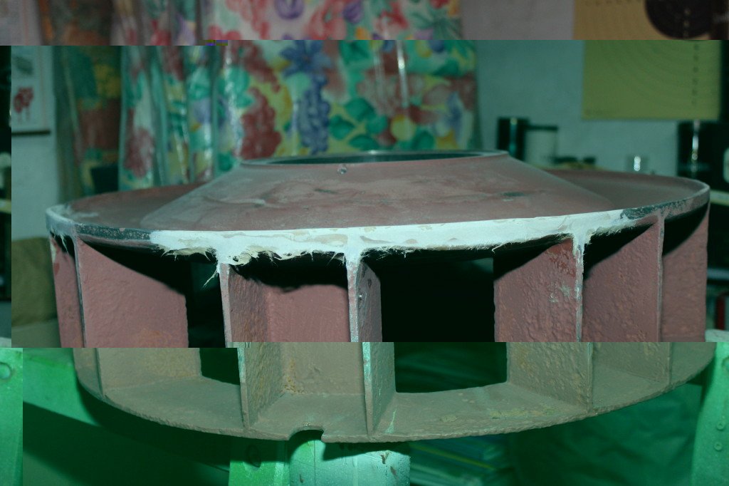 Nach vielen Tagen tut sich auch hier mal wieder was. Heute hab ich den Stator vom Sandstrahlen abgeholt. Zu Hause hab ich in gleich mit Rostblocker behandelt. Der reagiert gerade fleißig mir der wieder beginnenden Korrosion, ich bin aber "eine Runde rum". Interessant ist, dass das Strahlen einen Gußlunker in einem Feld freigelegt hat, früher verschlossen durch Lack und Gammel. Auch die vormals nur erahnbaren Entwässerungsbohrungen erscheinen jetzt in ihrer wahren Größe.