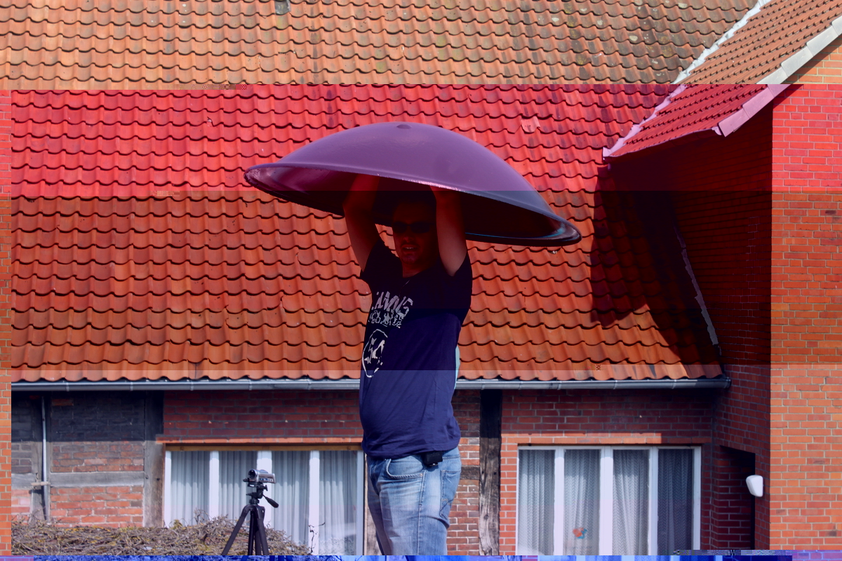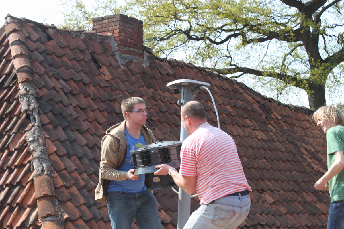 Erstmal den Mastkopf drauf: Mastkopf: Check! So da kommt die Helin... Mit mir zusammen: Dann erstmal zum Mast tragen: Dann mit Schwung... ...Umgreifen und hoch damit: Noch fix alles Anziehen: Da kommt das Dach: Dach aufsetzen: Kabel bzw. Leitung einführen: Weiter im nächsten Beitrag^^