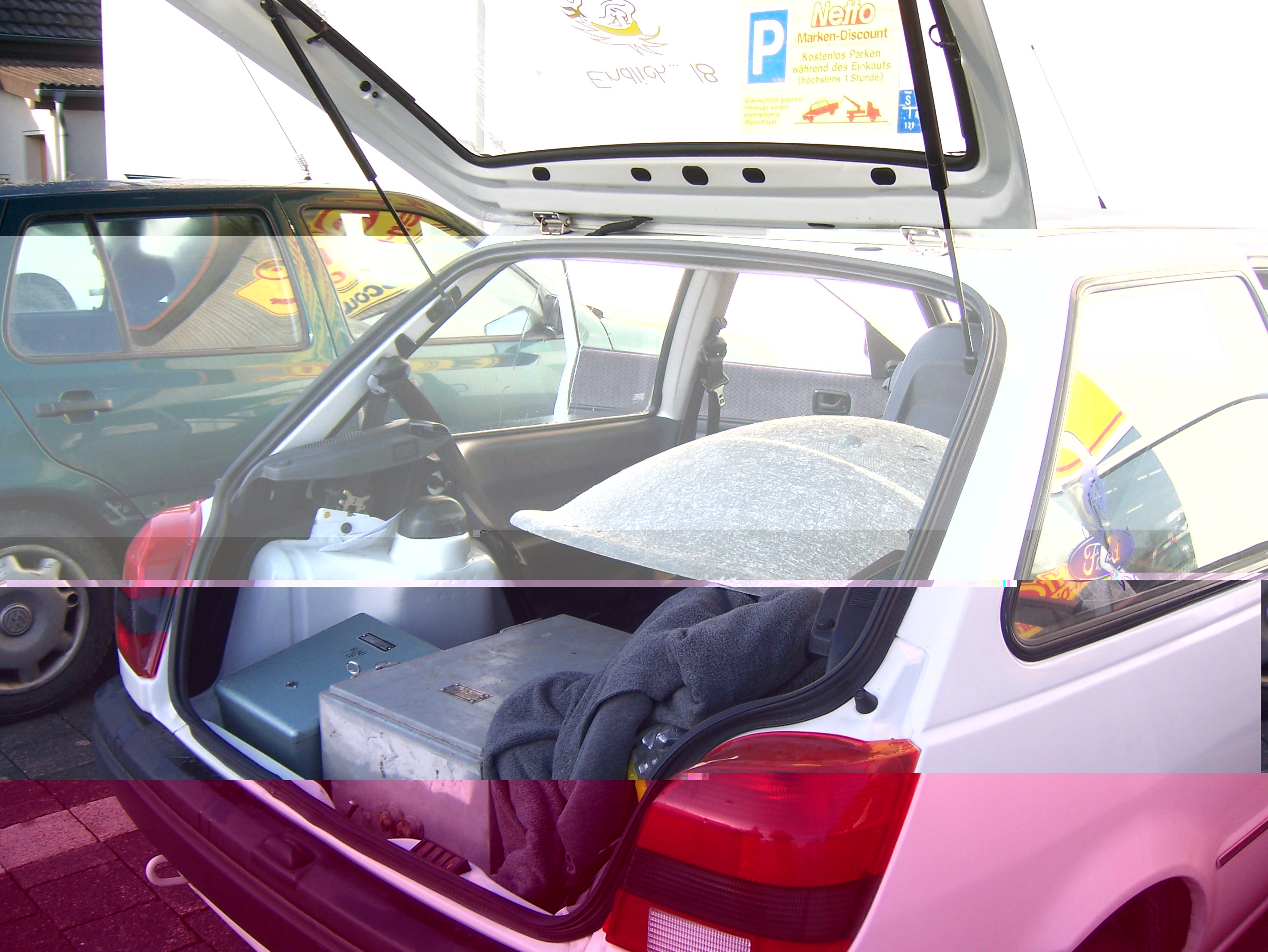 Man glaubt kaum, was alles in einen Ford Fiesta passen kann. Ich war selbst erstaunt als das Dach mit viel Luft durch den Kofferraum passte.