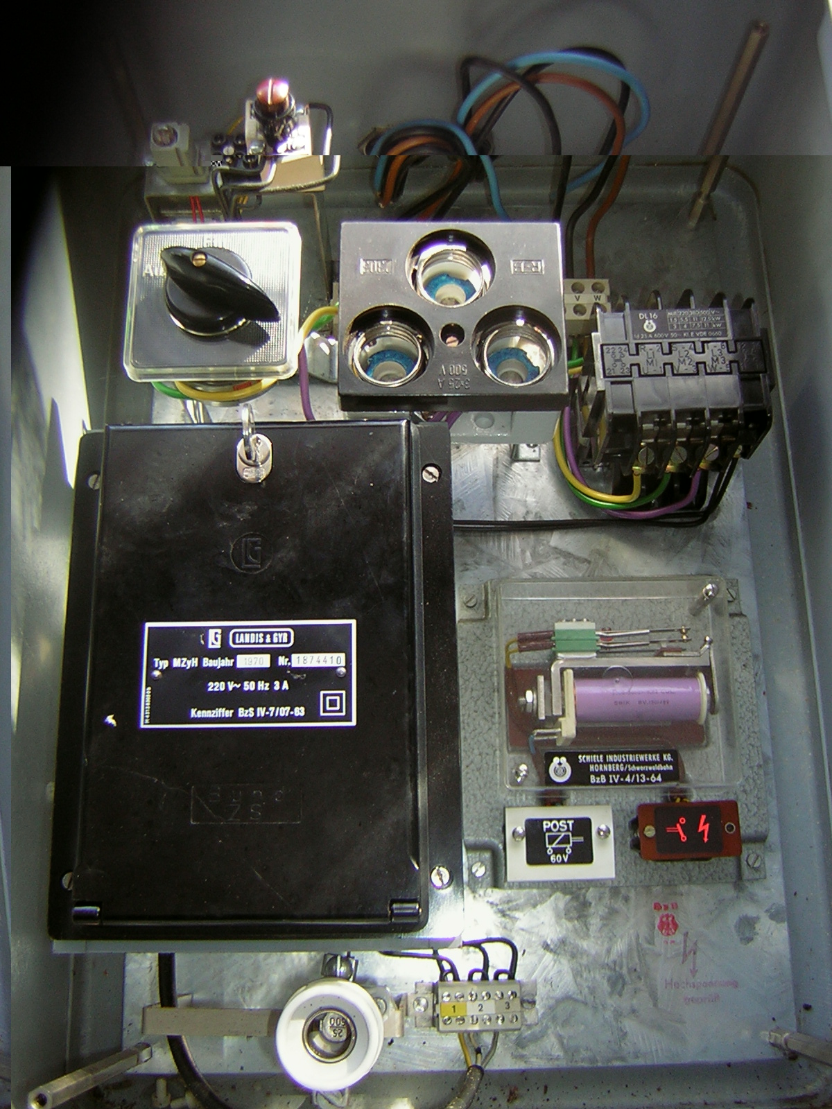 Soo...direkt nachdem ich dieses Thema eröffnet habe heute morgen, bin ich hingefahren und habe den Schützkasten ausgebaut! Das ganze ging überraschend schnell, da die Schrauben in einem ganz guten Zustand waren, was man ja von dem ganzen "Schrank" nicht behaupten kann!