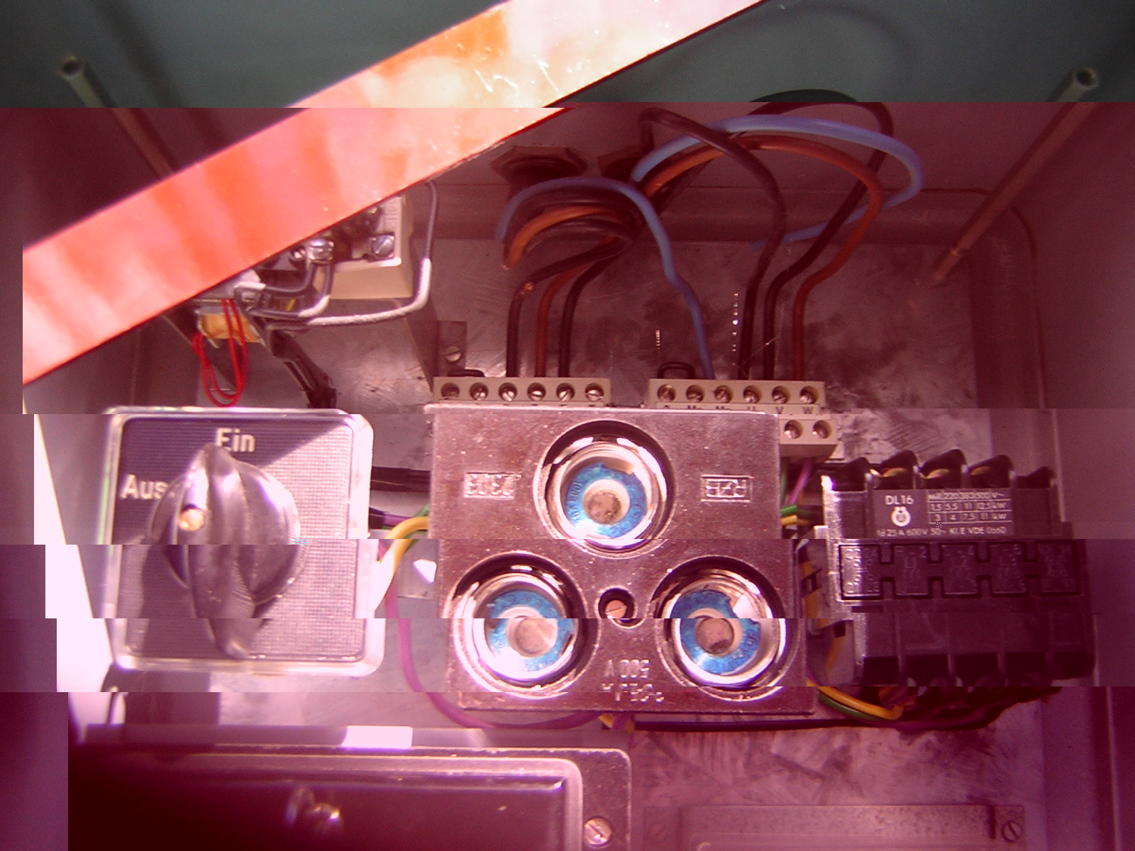 Nunja, dann habe ich die Hauptsicherungen herausgenommen und die Zuleitung zum Schaltkasten entfernt. Dann die Ableitung zur Sirene gekappt!