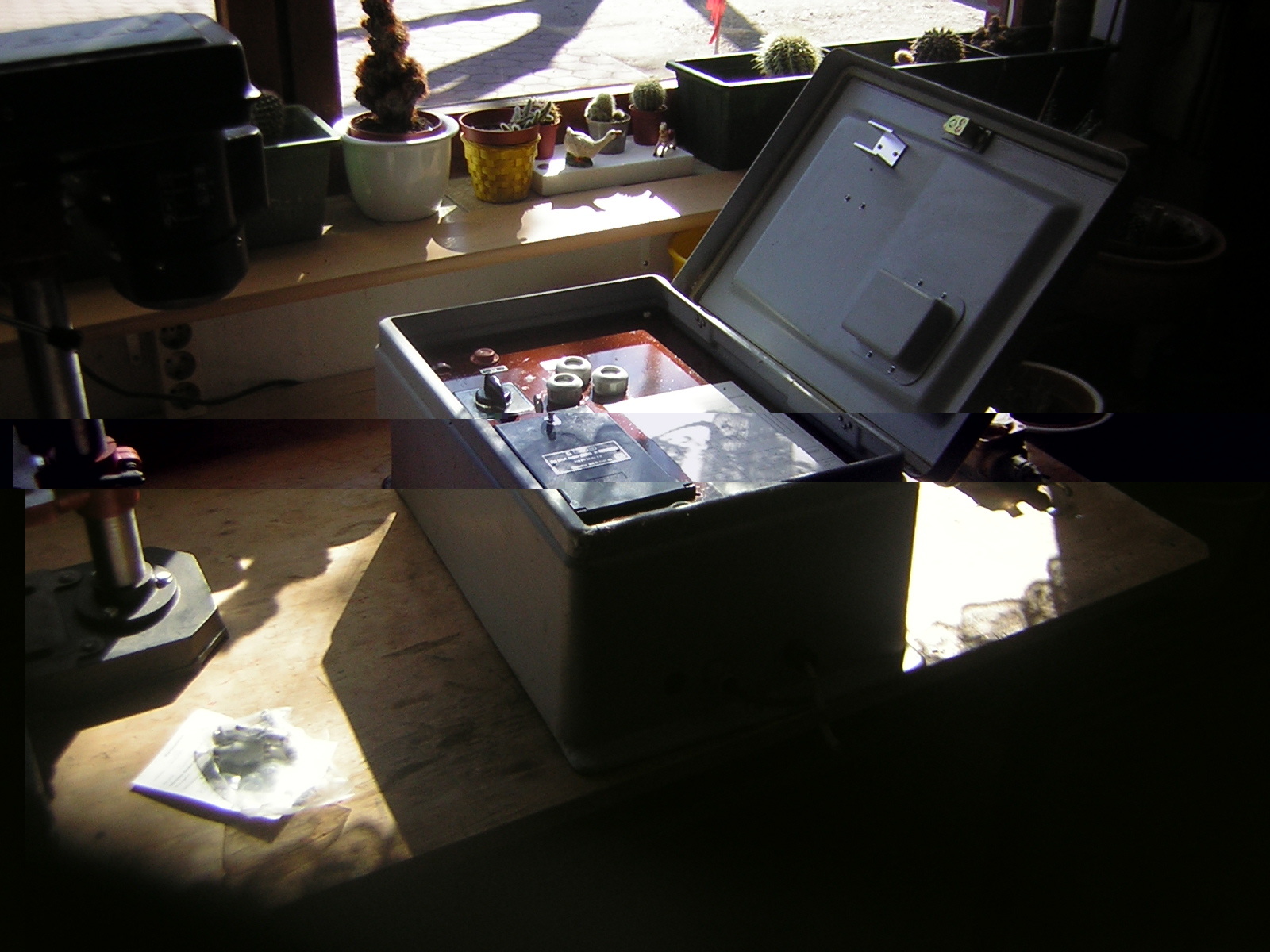 2 der 3 Schrauben, mit denen der Schützkasten befestigt war gingen super ab, doch die 3. und letzte Schraube machte so ihre Schwierigkeiten, ging aber nach etwas schimpfen und drohen dann auch freiwillig ab
