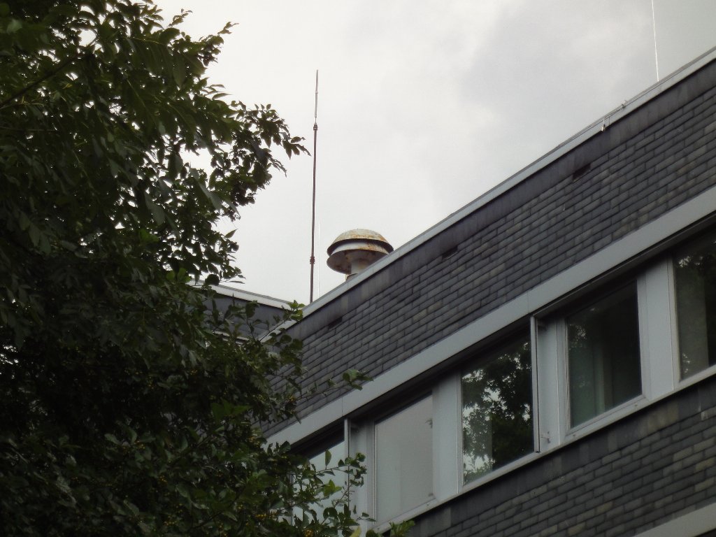 Das stimmt wohl, passt aber nicht zu dem Gebäude, auf dem sie steht, denn das ist mit einiger Sicherheit jünger als 1957. Mindestens merkwürdig ist das schon.