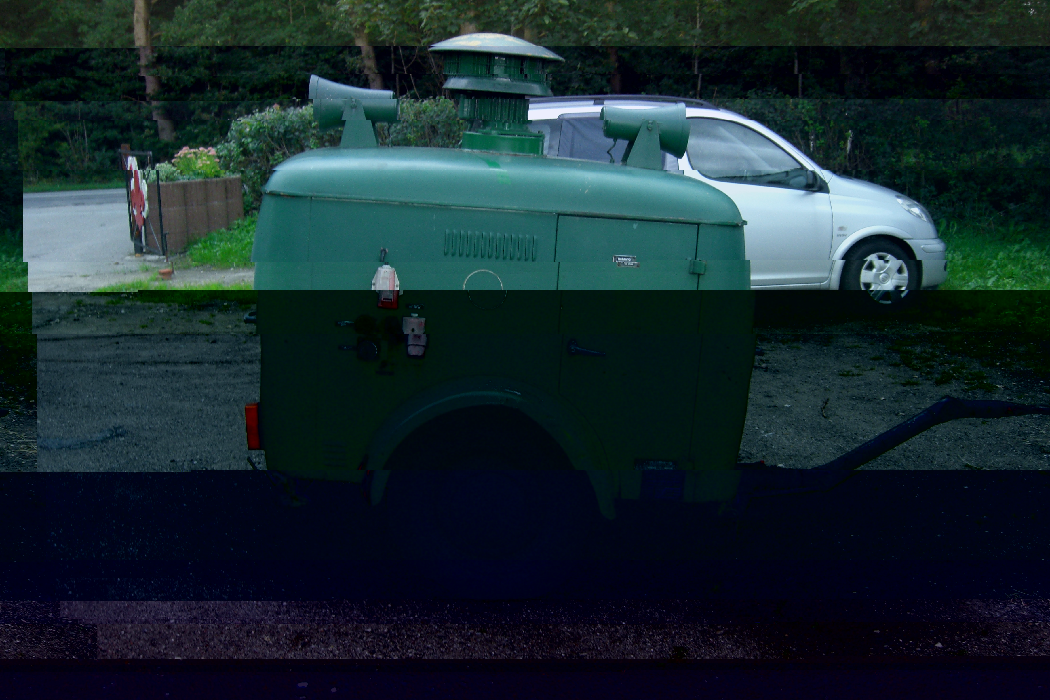 Die Sirene, die beiden Lautsprecher, Steuergerät mit Kabel, Ersatzrad, Schaltpläne und Schlüssel für das Steuergerät sind vorhanden. Es fehlen nach auswerten der ersten Bilder: