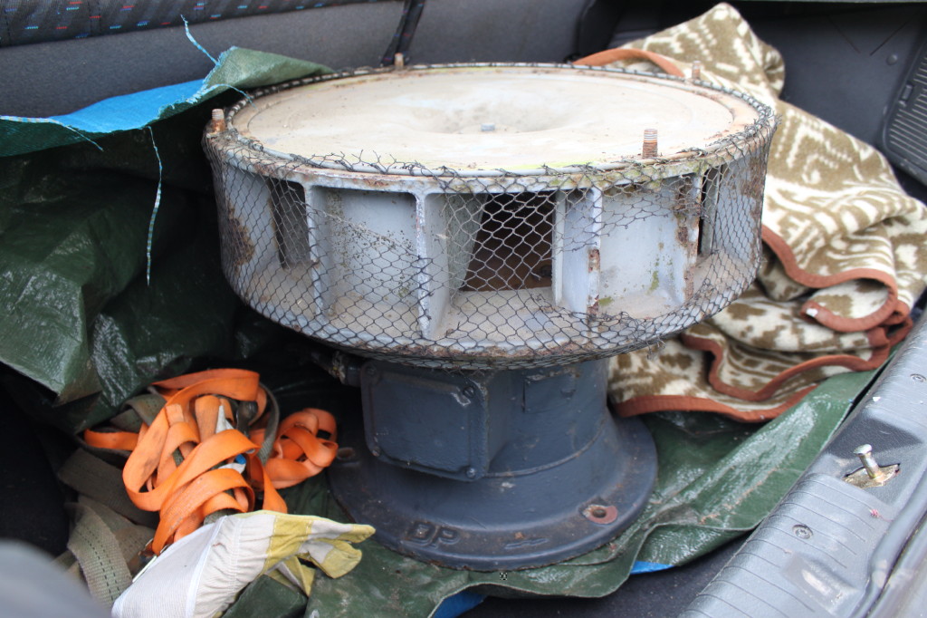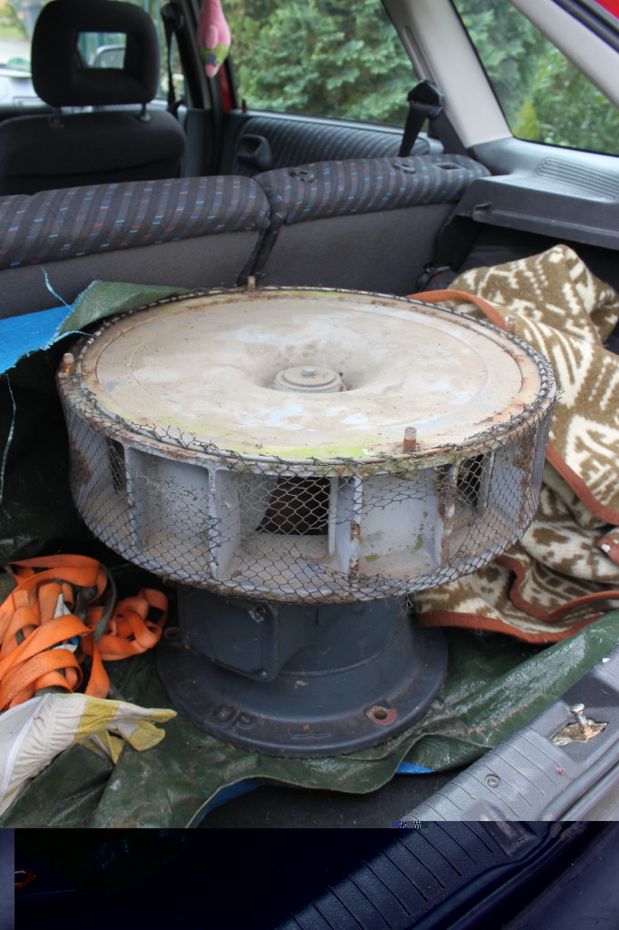 Aber der Reihe nach. Gestern Abend bekam ich ne Mail mit einem Link zu einer Kleinanzeige, dort ein Foto einer noch montierten DS977 und ne Handynummer. Anruf, ja, ist noch da, aber wie machen, das Teil steht in Mecklenburg-Vorpommern, ich komme aus dem Harz. Klasse, aber ich war heiß, auch der moderate Preis hat mir gefallen. Nun hat auch noch gepaßt, dass ich noch Urlaub hatte, der Verkäufer zufällig auch. Also heute früh um 4 die Hühner gesattelt und los. Nach rund 4h stand ich dann vor dem Gebäude, der Verkäufer war auch schon da. Die Situation war besser als ich gedacht hatte, sie stand in rund 6m Höhe direkt neben einer Dachluke. Also aufs Dach und los. Zuerst war mir etwas mulmig, zwar hatte der Wehrleiter sein OK gegeben, aber man weiß ja nie. Ich war schon leicht beruhigt, als ich feststellte, dass der Rotor fest war. Nachdem wir das Dach abgebaut hatten, kriegten wir ihn aber sofort frei. Das Dach konnten wir problemlos abseilen, die Sirene wurde schwieriger. Mit der Vorstellung, sie über die Kante abzuseilen, konnte ich mich nicht anfreunden. Also durch die Luke, hier passte sie mit etwas Verkanten auf den Millimeter. Er oben am Gurt, ich unter dem 100kg-Klotz. Dann war sie endlich auf dem Dachboden. Der Rest war leicht, wie auf Bestellung lagen Paletten treppenförmig aufgestapelt, da haben wir sie Schritt für Schritt runtergewuchtet und gleich ab ins Auto. Den Mastfuß abflexen ging ratfatz. Dann gings noch an den Schützenkasten und den Melder. Als wir an Schützenkasten waren, sind meine letzten Zweifel verflogen. Die Hauptsicherungen waren draußen, alle Kabel waren schon durchgeschnitten, hier war schon eine ganze Weile nichts mehr in Betrieb gewesen. Im Kasten lagen noch Inspektionsnachweise von Hörmann Schwerin, die letzte war 2006. Hab ich mir natürlich auch gekrallt. Dann hab ich eben vorm Fotosmachen noch ne Ersatzlampe für die Meldeleuchte und 2 Feinsicherungen gefunden. Den Melder hätte ich beinahe dort lassen müssen, er hatte keinen Schlüssel und die alten Dübel erwiesen sich zunächst als hartnäckig. Doch auch die hatten irgendwann verspielt. Als ich dann wieder Richtung Heimat fuhr stellte ich fest, dass ich vor Aufregung kein einziges Foto gemacht habe. Müssen leider die von Zuhause reichen. Wenn ich das Gerät aus dem Kofferraum gewuchtet habe, mache ich noch ein paar Aufnahmen. Restauriert werden muß sie definitiv, die Jahre auf dem Dach bei Wind und Wetter haben eben ihre Spuren hinterlassen. Ist eben nur ne Zeitfrage, wann es hier wie weitergeht ;-)