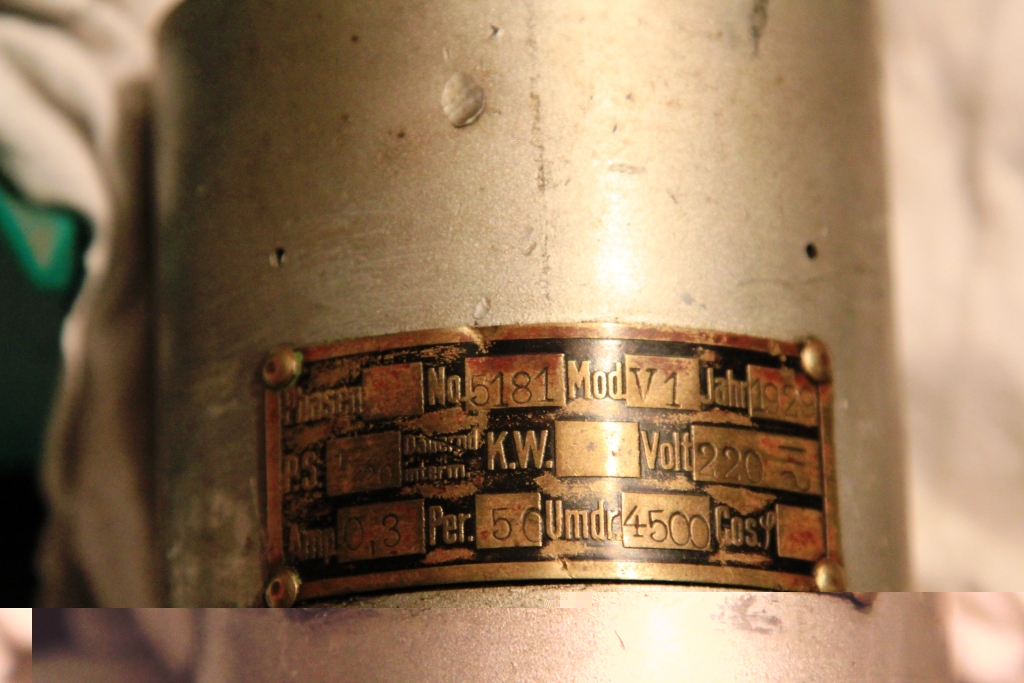 Eins kann ich dir sagen: Die hat Gleitlager und mir unbekannt. Hab sowas noch nie gesehen. Wird sehr alt sein. Vielleicht sogar noch vor WWII? Hab ja auch so einen kanidaten, die GS-1 die nur auf 120v AC läuft