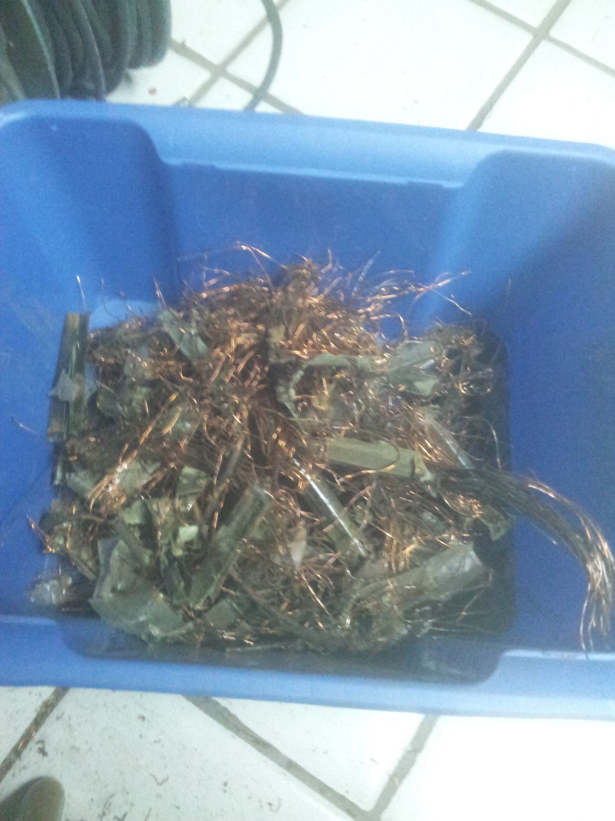 Als erstes ging es an den Drahtrest. Das war eine Drecksarbeit. Erst knippte ich über eine Stunde mit einem Seitenschneider an den Drähten unten rum. An rausziehen war dabei nicht zu denken. Dann hatte ich die Schnauze voll wie man so schön sagt und schlug mit einer M8er Gewindestande die Drahtstränge von oben nach unten heraus. Hier das Ergebnis: Hier die ganzen Kupferdrähte. Man bedenke, dass ein Teil ja schon bei Totusignotus entfernt wurde. Dann ging es dem Blechpaket an den Kragen. Im blechpaket sind insgesamt 6 Bolzen. Diese wurden von oben Kurz angebohrt und dann mit einer längeren M5er Schraube nach unten durchgeschlagen. Dann konnte ich Blech für Blech einzeln rausnehmen. Hier schon fast am Anfang des Motorgehäuses: Selbst im Motorgehäuse kamen mir die Bleche mit wenig Kraftaufwand entgegen.