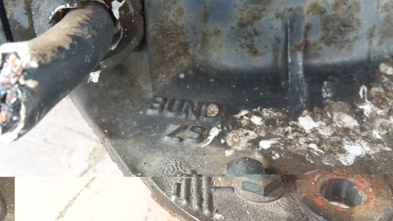 Flex und Topfbürste mal versucht, aber mir zu Umständlich. Also Sandstrahlen. Coole Sache das: hier fliegt wirklich alles weg: Rost, Vogelkacke, Loser Guß.