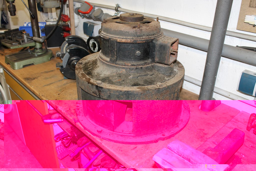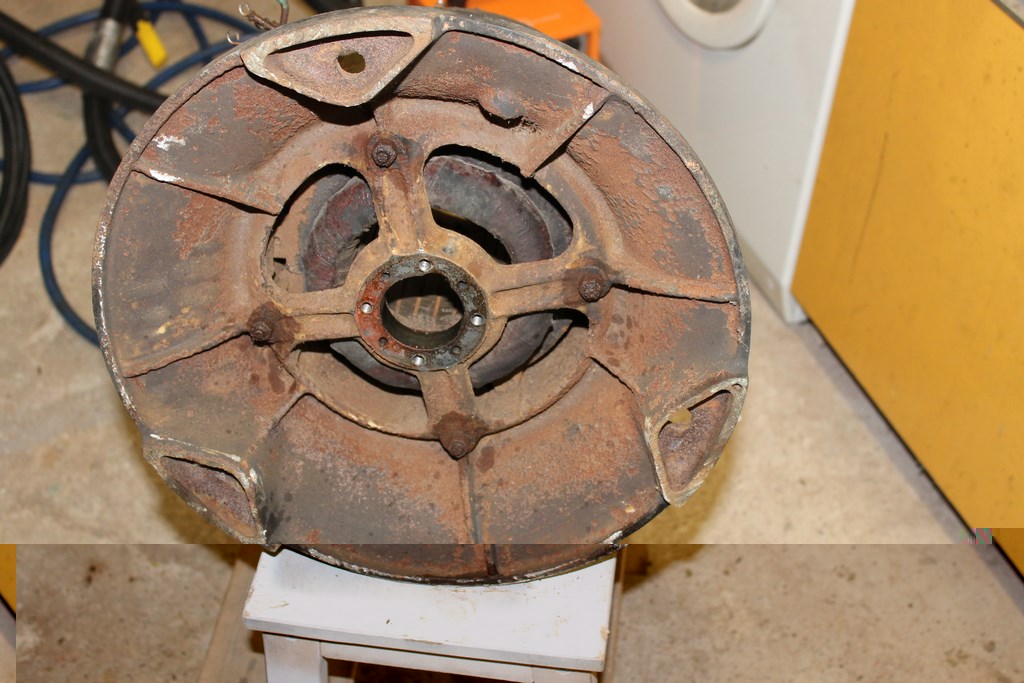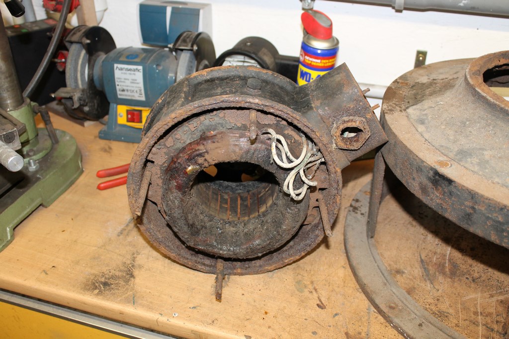 Zack war der Stator runter und so sah der Motor dann aus, immernoch gute 45 Kilo!