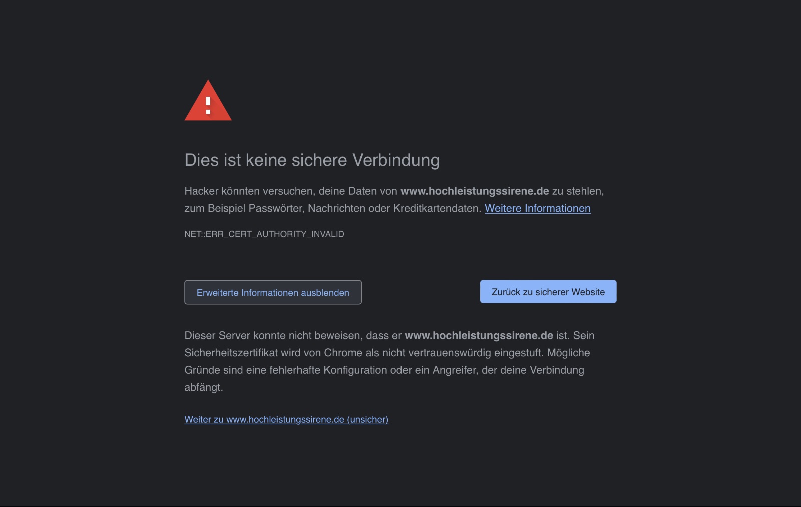 Ich komme nicht auf die Webseite von www.Hochleistungssirene.de