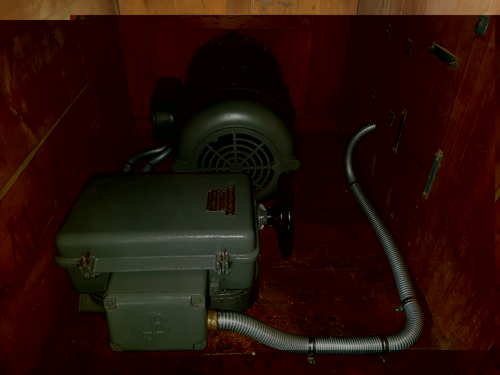 In der Mitte des Wagens befindet sich der Motor mit dem zugehörigen Stufenschalter: Es handelt sich um einen Bruncken DoKa Motor mit 15kW, eine sehr interesante Bauform, welche im Wesentlichen aus zwei Asynchronmaschinen auf einer gemeinsamen Welle besteht. Durch den Stufenschalter lässt sich der Motor mit relativ geringem Anlaufstrom in Betrieb nehmen.