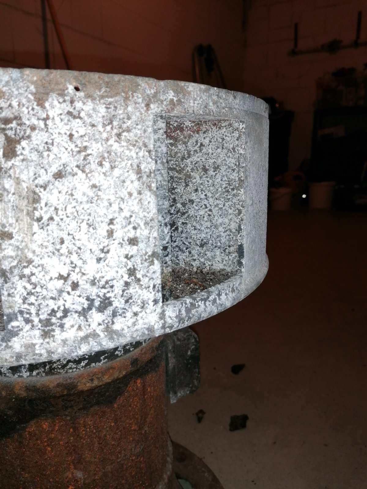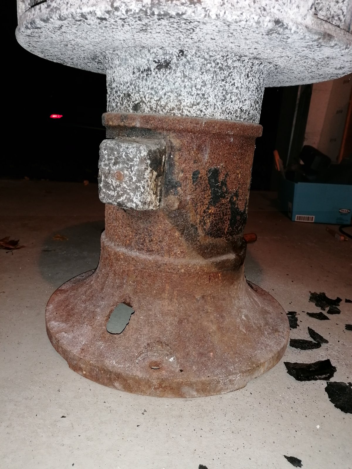 Habe bereits Vergleichsfotos von Elektor und Siemens-Sirenen angeschaut, aber sie gleicht offenbar keiner so richtig. Der Stator hat einen Durchmesser von 42,5 cm, die Höhe mit Motor beträgt 55 cm. Leider ist vom Typschild nur noch ein ca. 5mm kleines Eck übrig, sodass ich nichts über Hersteller und Typ sagen kann. Der Klemmkasten wird mit einer mittigen Schraube befestigt.