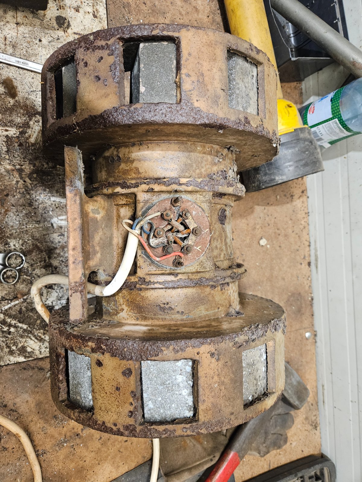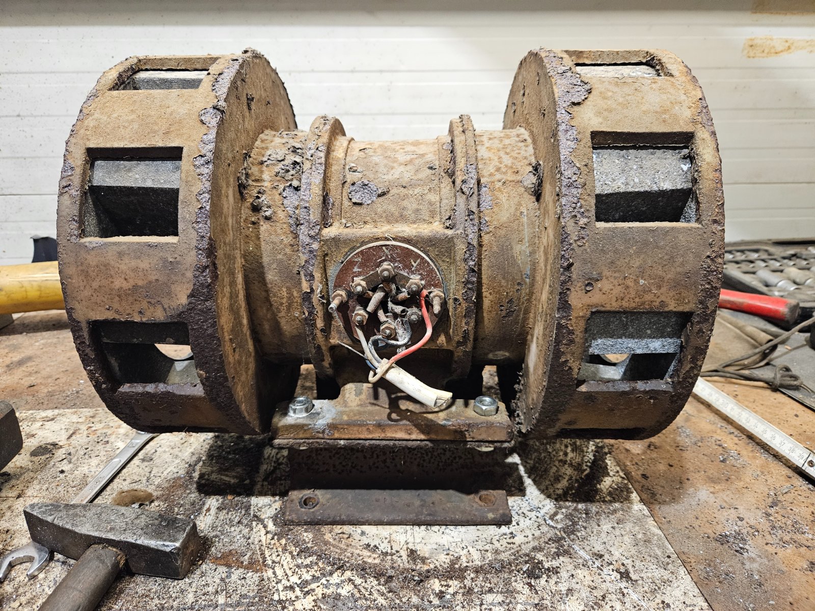 Die Welle dreht sich, wenn auch ein Lagertausch (aufgrund denkbar bekannter Umstände) unabkömmlich ist, die Wicklung ist durchgemessen und OK, und die Rotoren gehen auch feinstens ab. Der Plan ist, den Motor demnächst "sachte" anlaufen zu lassen und die alte Lady für Museumszwecke (restaurativ) betriebsfertig zu machen.